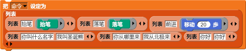 每个词语对应的动作或回答存储在一个叫”命令“的二维列表中。